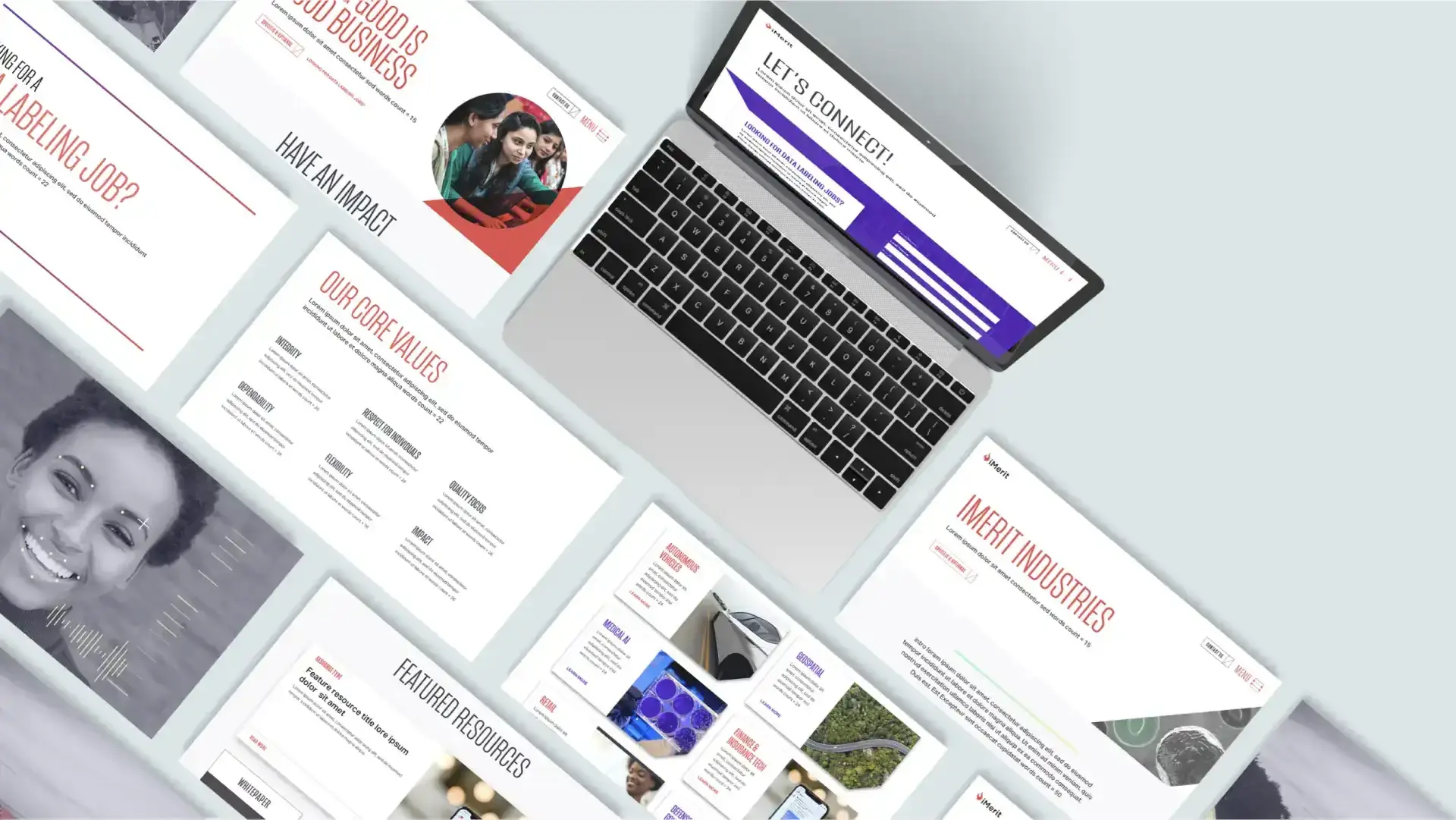 We delved deep into the company’s mission, vision, and people, via interviews and workshops, and soon realized that iMerit was a true bastion of the Silicon Valley spirit. This insight shaped an intuitive brand reflected in a website full of flexible UI and cutting-edge design. Golden ratio circles, line shapes, grids, and patterns reinforce iMerit’s technological leadership and mathematical accuracy, while secondary imagery balances the tech emphasis with iMerit’s focus on its people.